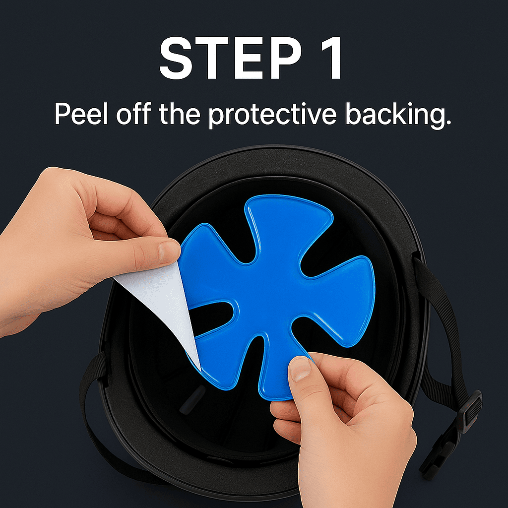 Peel. Press. Ride. EquiCool™ fits seamlessly into any helmet — with no clips, no glue, no shifting, and no added thickness.